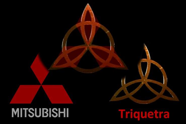 Логотип «Mitsubishi» представляет собой слияние трех бриллиантовых ромбов с тремя дубовыми листами, которые являлись элементами фамильных гербов основателей данного концерна Ивасаки (три ромба) и Торна (три дубовых листа, растущих из одной точки).
